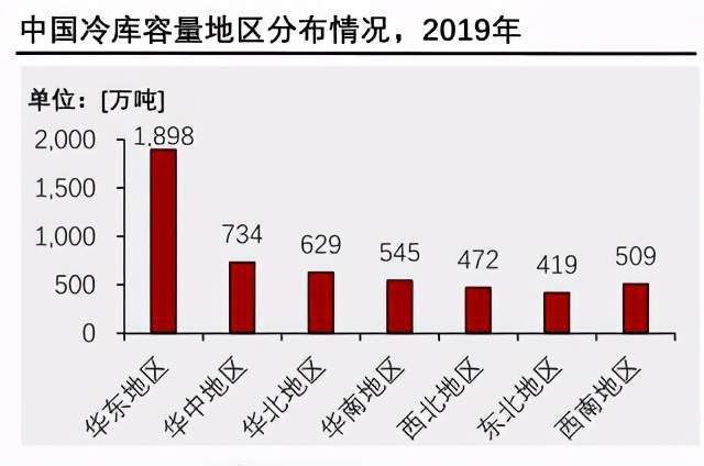 头豹研究院发布的《2021年中国冷链物流行业研究报告》显示,华东地区为中国冷链物流最为集中地域,以冷库建设规模为例,2019年仅华东地区冷库容量达1898万吨,占本土总容量的36.2%。