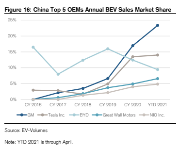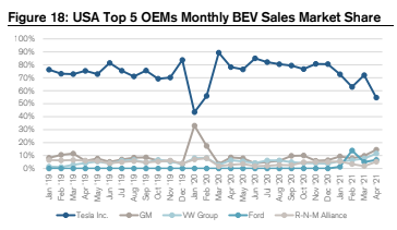 瑞士信贷(10.49,-0.02,-0.19%)此前调查显示,特斯拉在全球电动汽车市场份额从3月份的29%暴跌至4月份的11%。这是特斯拉自2019年1月以来的最低月度全球市场份额。