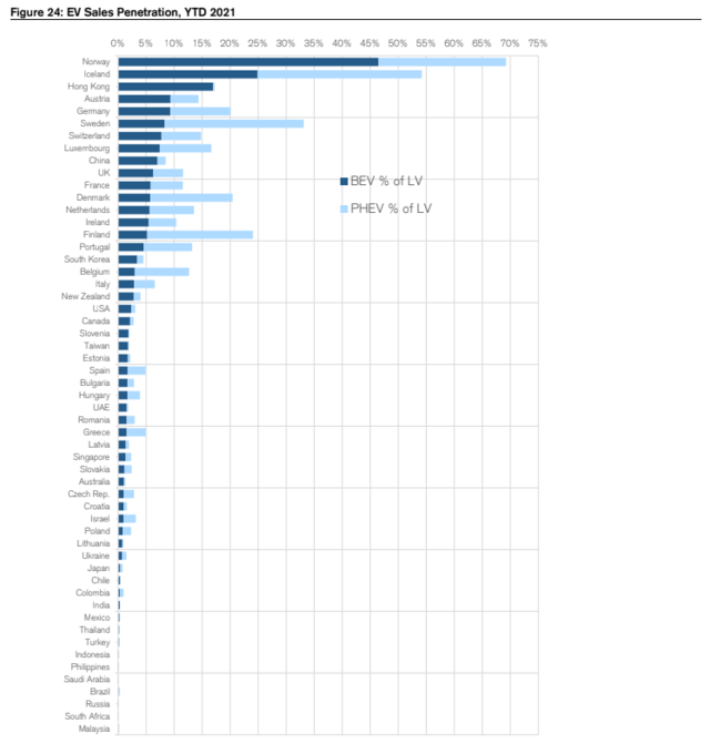与此同时,全球电动汽车销量似乎并未放缓,电动汽车在全球继续渗透。