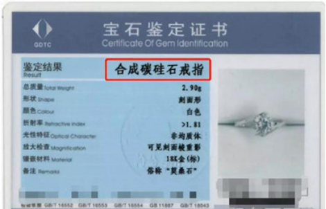 秦风提供的莫桑钻鉴定证书