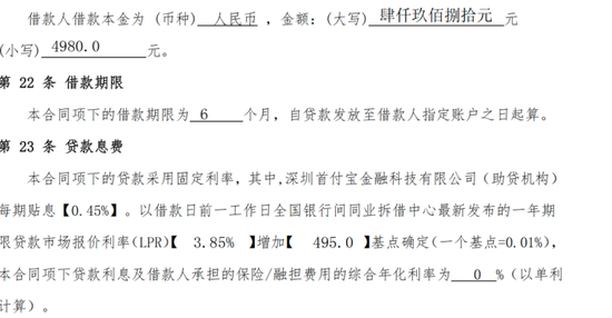 从贷款合同中可以计算出,深圳首付宝的贴息年化利率为5.4%,六期为2.7%,按照黄德5685元的本金计算,深圳首付宝仅需要给龙江银行支付153元的利息。