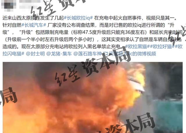 长城欧拉充电自燃 太原部分充电站将其拉黑