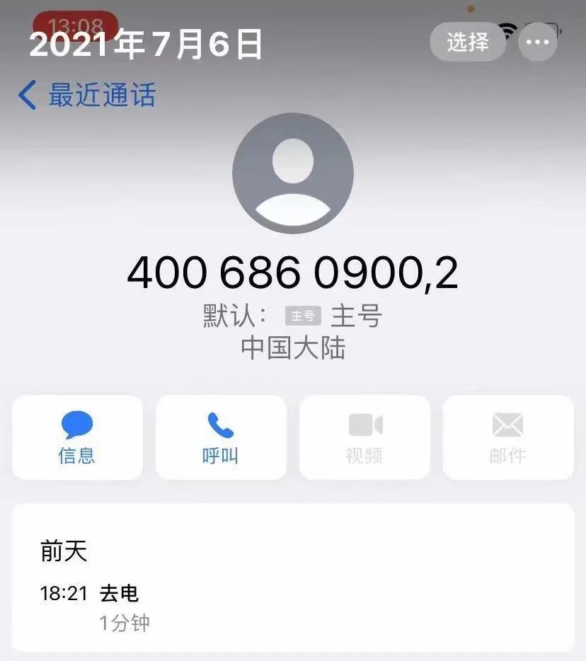 “有人说我为什么第一时间把消息告诉媒体,而不是找售后解决,质疑我的动机。事实上,我在第一时间就拨打了‘400’热线,当时也从未想过联系媒体。”孙先生告诉中新经纬,并提供了通话记录截图。