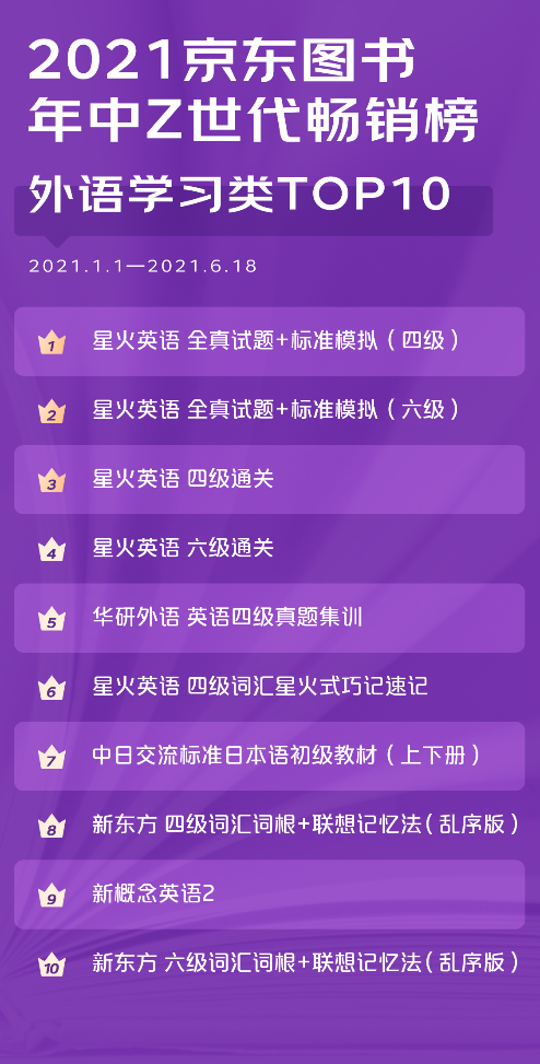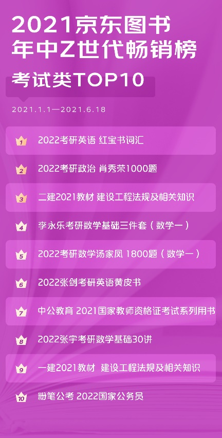 日前,京东图书围绕Z世代用户发布图书消费年中榜。通过榜单可以看出,2021年上半年,Z世代是购书用户增速最快的群体,人均购书金额也最高,而且,Z世代的购书款40%用于考试和学习,真是爱拼才会赢的一代!