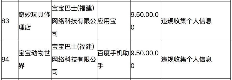 在合规问题上,宝宝巴士旗下的APP还曾因违规被通报。2020 年 10 月 27 日,工信部发布信息显示,宝宝巴士旗下奇妙玩具修理店和宝宝动物世界APP 因存在违规收集个人信息行为被通报。