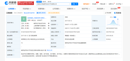 天眼查App显示,南京知行新能源汽车技术开发有限公司成立于2017年6月,法定代表人DANIEL ISIDOR KIRCHERT,注册资本约56.46亿人民币。经营范围含电动汽车及零部件研发;自营和代理各类商品及技术的进出口业务等。股东信息显示,该公司由知行新能源汽车投资管理(南京)有限公司、南京启宁丰新能源汽车产业投资基金合伙企业(有限合伙)共同持股。值得注意的是,南京知行新能源汽车技术开发有限公司已有数十则终本案件、限制消费令等。