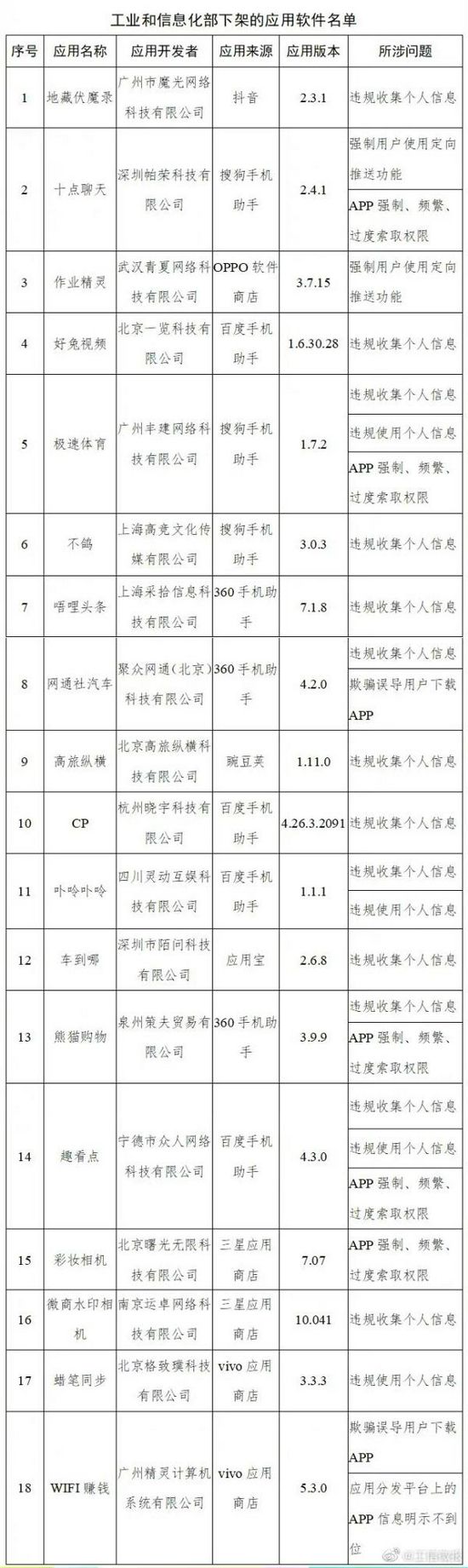 48款问题APP有:地藏伏魔录、十点聊天、作业精灵、极速体育、网通社汽车、熊猫购物、趣看点、WIFI赚钱、锁屏大师、美莱严选、蘑菇租房、拼金金、家家购物、悦读家园、格灵同步培优、花嫁、探街等。