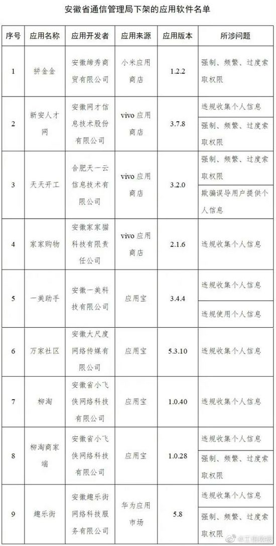 工信部官网7月12日发布,工信部近期向社会通报了2021年第5批侵害用户权益APP名单。截至目前尚有18款APP未按照要求完成整改。上海、安徽、广东、四川省(市)通信管理局检查发现共有30款APP仍未完成整改。