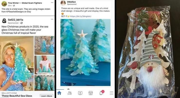 去年十月,美国的消费者在Facebook上多次看到了海玻璃圣诞树广告,看到价格不算贵就买了。结果,到手里却变成了这... ...