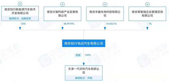 企查查信息显示,南京知行电动汽车有限公司的第一大股东正是南京知行新能源汽车技术开发有限公司,持股50%。
