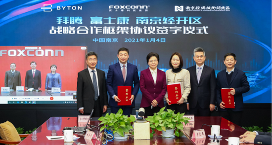 就在大家觉得拜腾就此完了的时候,2021年1月4日,拜腾汽车发布公告,拜腾已经与富士康、南京经济开发区签署战略合作框架协议,共同在 2022 年第一季度前加快生产拜腾的量产。