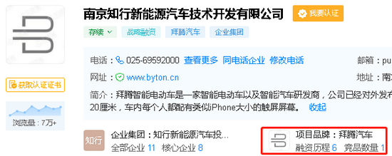 具体来说,其旗下的品牌大家应该很熟悉:拜腾汽车。公开资料显示,拜腾汽车成立于2017年9月,是南京知行新能源技术开发有限公司旗下的新能源汽车品牌。