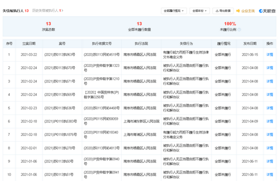 截至最新,拜腾作为失信被执行人的涉案时间高达13宗,也因为被限制消费令。