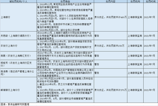 农发行上海分行因2017年8月、12月,部分固定资产贷款变相用于支付土地出让金,被责令改正并处罚款150万,同时,上海银行浦西分行及农发行相关支行的有关负责人均被警告。