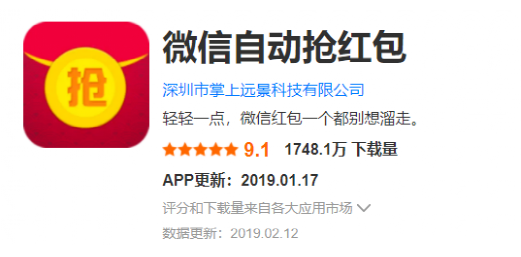 红星资本局发现,除微信自动抢红包之外,掌上远景还推出过一款名为“红包快手”的APP,也具有自动抢红包功能。