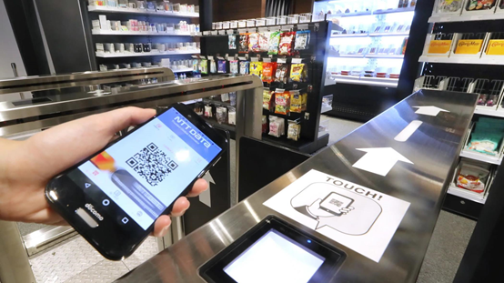 顾客将通过智能手机应用程序扫描二维码进入商店,选择商品然后离开。当他们离开商店时,系统会自动进行划款。