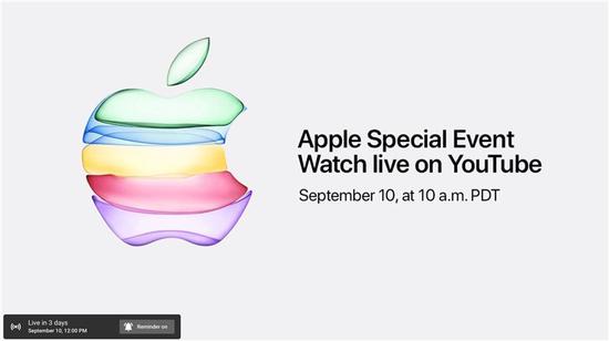 科创 苹果将首次通过YouTube直播iPhone 11发布会 2019-09-07 16:33:23 分享 IT之家9月7日消息苹果秋季新品发布会将于美国太平洋时间9月10日上午10点(北京时间2019年9月11日凌晨1点)举行,苹果公司今天宣布将在YouTube上直播该发布会,这也是苹果首次选择在Youtube上直播发布会。 苹果今天在YouTube视频分享网站上上传了一段直播预告视频,用户可以设置提醒,在发布会开始时提醒自己。苹果通常会在发布会几天后将其上传到YouTube,但之前没有使用YouTube直播过发布会。用户还可以在Apple TV上的Events应用和苹果官网上观看直播。