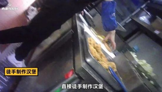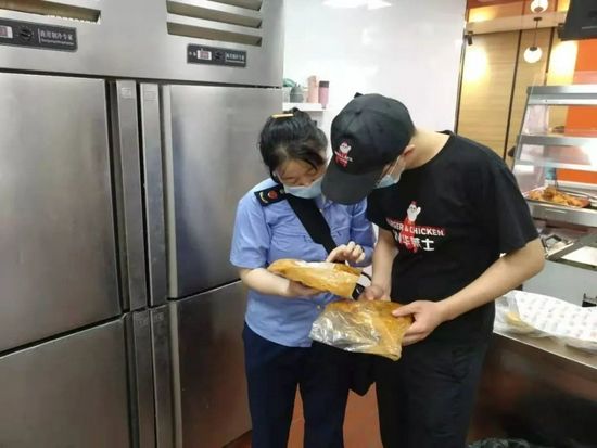 门店后厨的环境卫生状况不佳,紧挨炸鸡腌制区的垃圾桶没有加盖,蚊虫飞舞;加工制作汉堡的区域没有做到生熟分开;仓库里装有面包、炸鸡炸粉的纸箱、纸袋都直接堆放在地上;冰箱的冷冻室结霜严重,存放的半成品也未加贴制作日期和使用期限的标签。在饮料销售区,冰铲也没有按要求消毒,直接放在制冰机内。