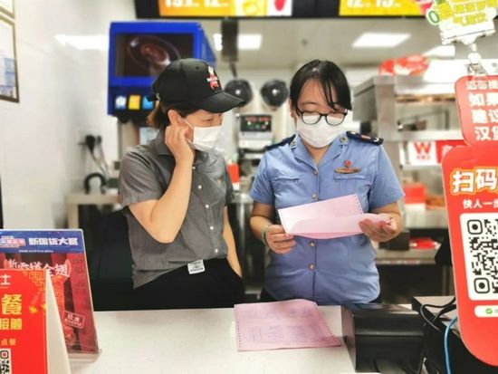 禾山市场监管所执法人员检查华莱士门店食品进货票据