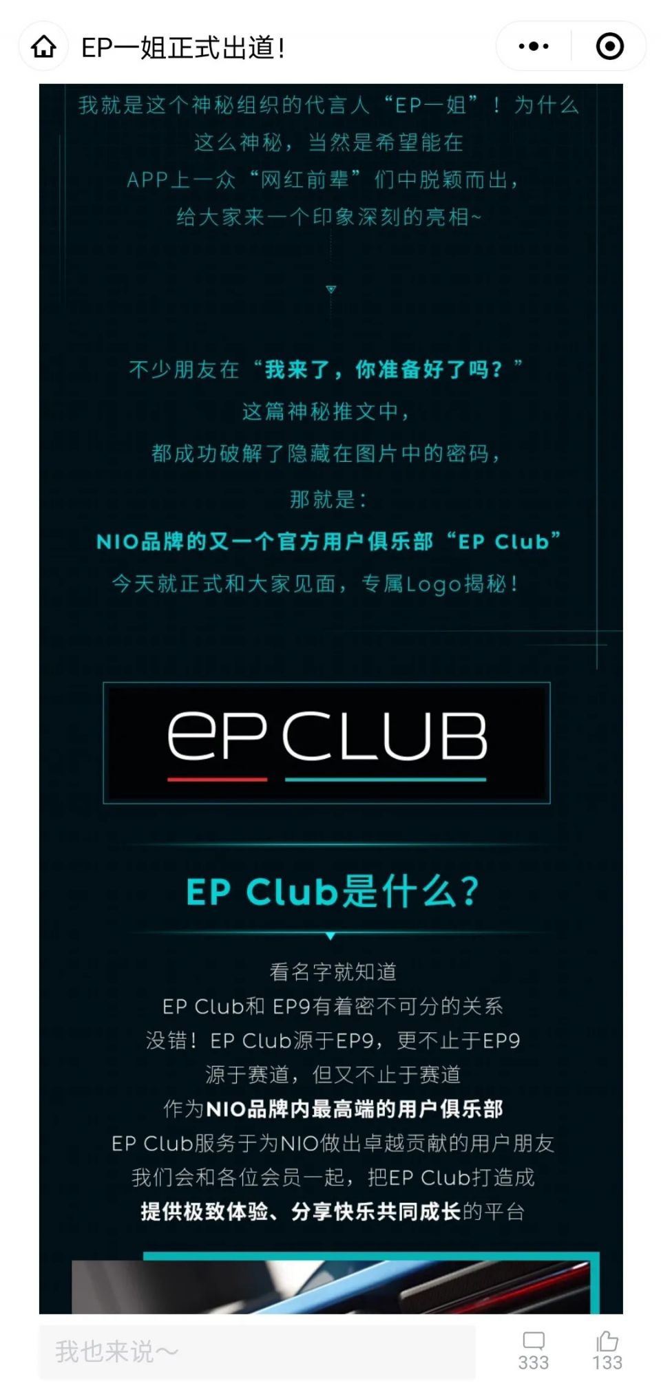 蔚来方面对红星资本局表示:“俱乐部内部信息除了APP里@EP一姐的发布,其他不对外公开。”