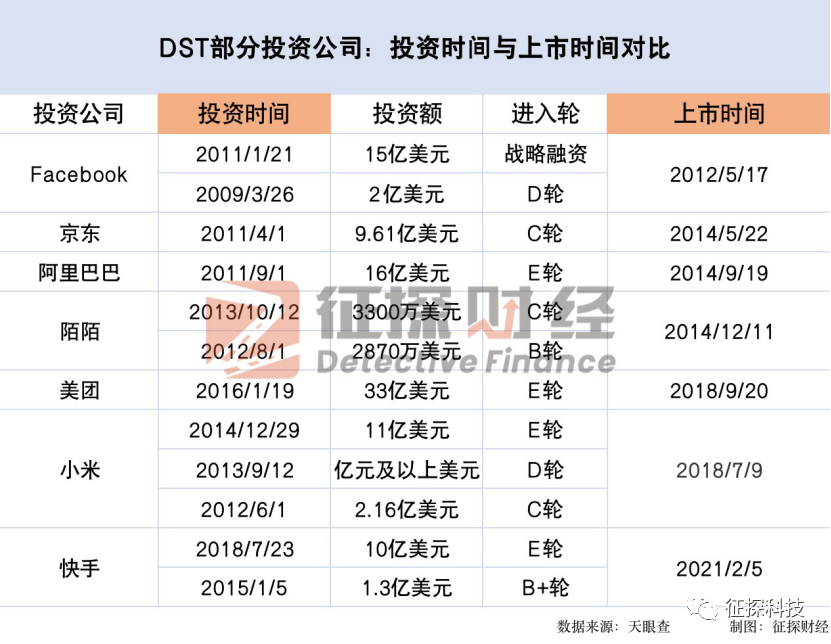 DST部分投资公司与上市时间对比 雨橙制图