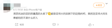 还有网友甚至表示,“美团优选的菜的质量真的太差了,像是菜场大妈卖剩下的边角料。”