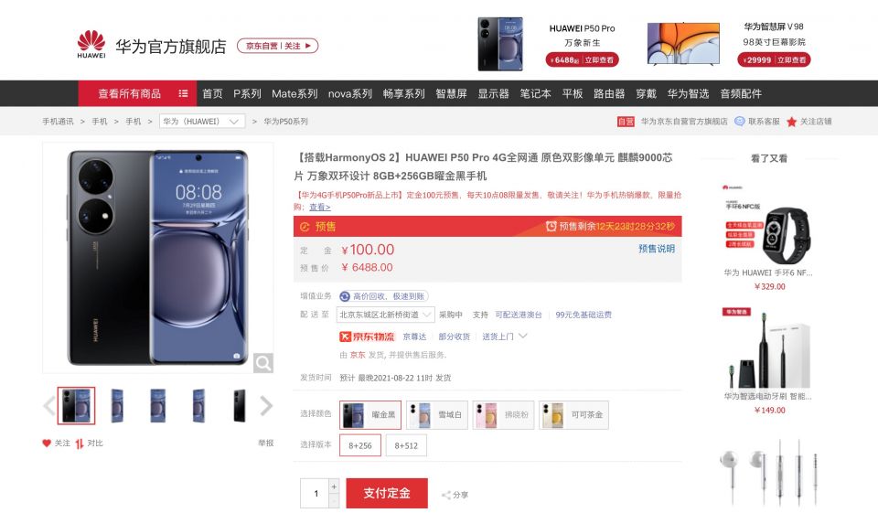 7月29日晚,华为在线上举行以"万象新生"为主题的旗舰新品发布会,年度旗舰新品华为P50系列正式发布。据了解,华为P50系列共拥有P50、P50 Pro两个版本,分别使用了麒麟9000和高通骁龙888两款不同的旗舰级SOC。据悉,搭载麒麟9000芯片的P50 Pro在7月30日已开启预售,并将于8月12日10:08正式开售,售价为6488元起;载骁龙888芯片的P50 Pro将于12月开售,售价5988元起;搭载骁龙888芯片的P50将于9月正式开售,售价为4488元起。目前,P50 Pro已在京东开启100元定金预售通道,每天10:08限量发售,想要一睹华为P50风采的花粉们,一定要定好闹钟哦。