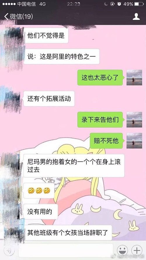 8月8日,随着阿里女员工被侵害一事引起热议并不断发酵,微博上流传出多张“阿里 破冰文化”的低俗聊天截图。