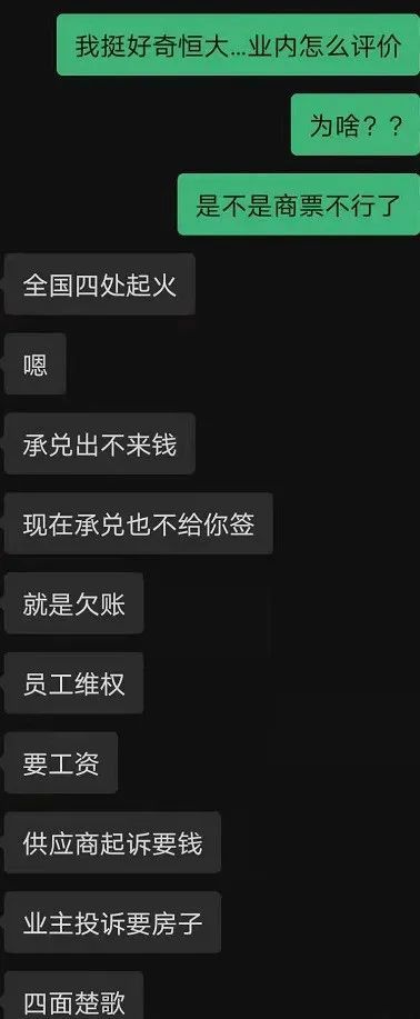 他们也是恒大供应商,在通过各种方面收集恒大消息,在找机会处理自己手中恒大的商票,等待微乎其微的转机。