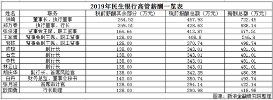 民生银行高管们2020年赚了多少钱?