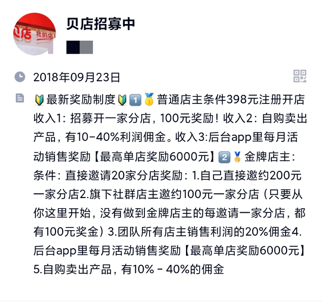 不难看出,贝店这一奖励制度,明显针对拉新的鼓励更多,实际上店主也难以通过分享购买获得足够的酬金,拉人头也就成为了其获利来源。