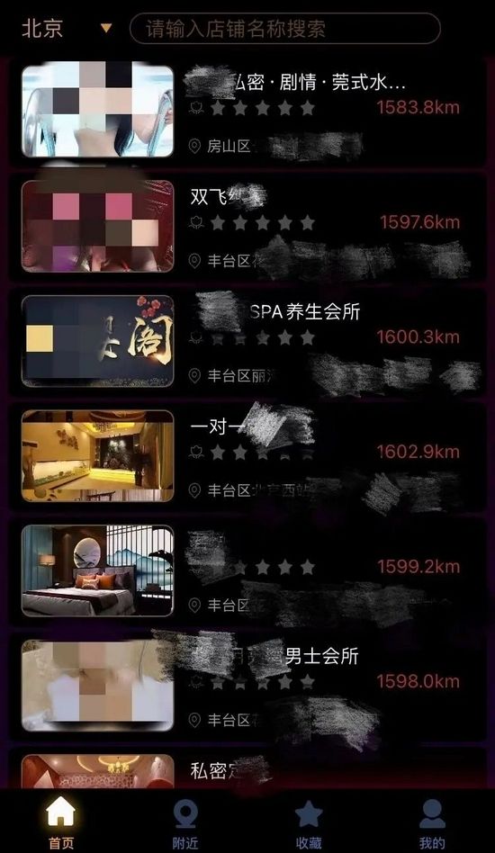 首次打开这款App,选择所在城市后,首页随即便出现了相应的会所列表,这些会所名称露骨直白,如“高端私密嫩妹服务”“全国高端外围”“双*纯情”“*式一套龙”等,在简介中,则披露了各式服务项目、性服务者照片、价格、联系方式等。
