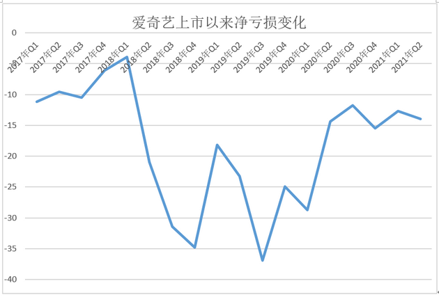 爱奇艺赴美上市三年多来,净利润项下依然难求正数,但净亏损已经连续五个季度同比下降。今年二季度,爱奇艺净亏损13.97亿元,去年同期为14.42亿元。