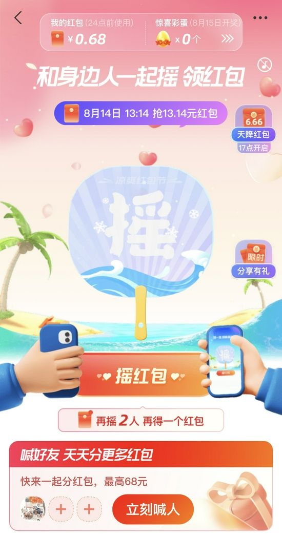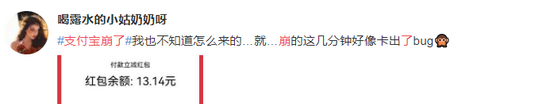 商业 支付宝崩了上热搜:疑因七夕抢红包活动 2021-08-15 10:05:58 分享 来源:新浪财经8月14日,#支付宝崩了#登上微博热搜。有网友表示,我也不知道怎么来的…就…崩的这几分钟好像卡出了bug也有网友调侃:没崩啊,是给对象转钱太多超上限了吧还有网友说,支付宝崩了,我怎么还没那个活动?所以我的支付宝好端端的。据了解,支付宝在其客户端页面推出了“8月14日13:14抢13.14元红包”的活动。