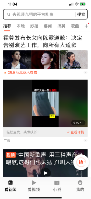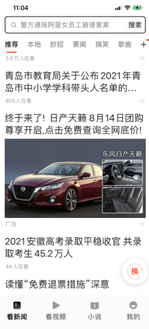 点开UC浏览器大字版,除了头条的新闻外,二条就是一条广告,随着屏幕下拉,每隔两至三条资讯就能看到一条广告,广告内容包含了种牙、植发、老年鞋、家用品等,甚至偶尔还会出现游戏广告。