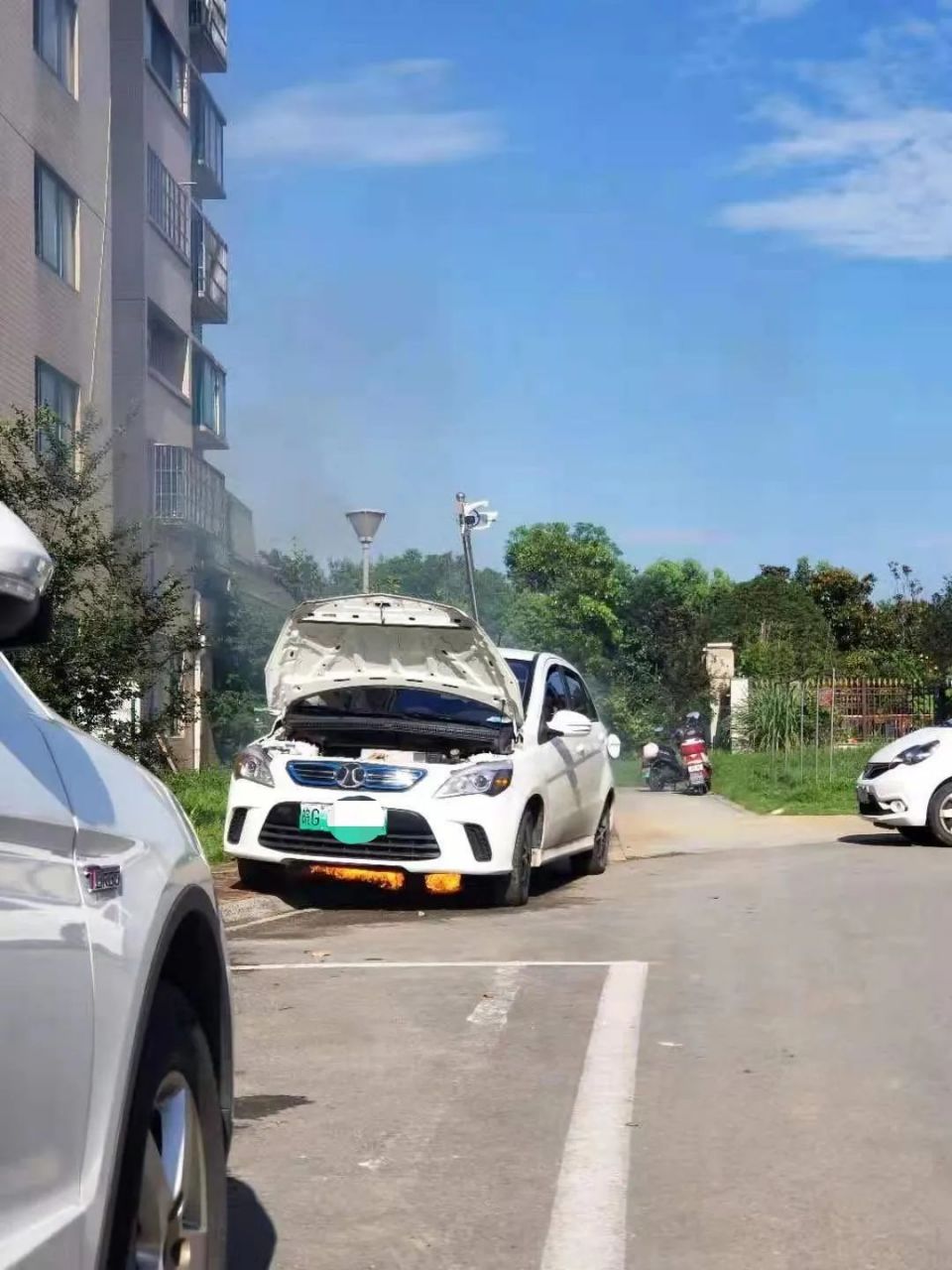 “第二天(7月20日)上午8点左右,小区物业工作人员通知我说我的汽车起火了,我马上去到停车的地方,发现我的汽车果真起火燃烧了。”包先生说道。