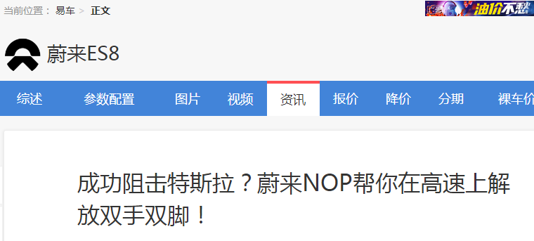 例如,由李斌创建的易车网,在2020年10月上线了一篇题为《成功阻击特斯拉?蔚来NOP帮你在高速上解放双手双脚!》简介辅助驾驶的文章。