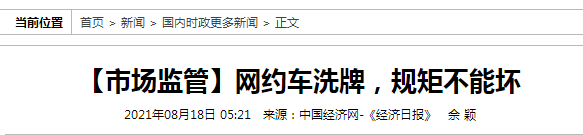 8月18日中国经济网刊发一篇“网约车洗牌,规矩不能坏”的文章。