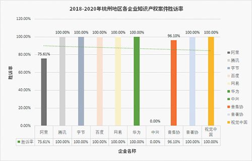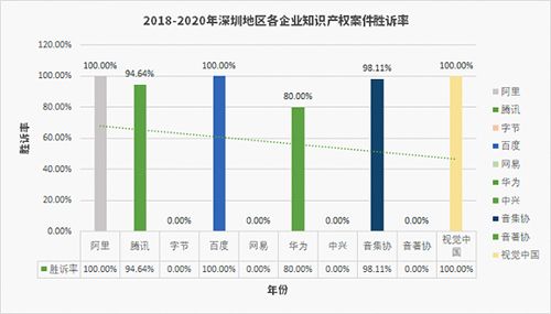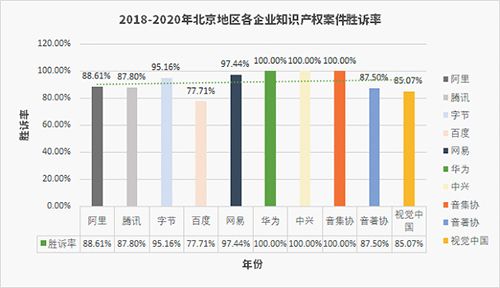 其中,字节公司在企业知识产权案件胜诉率上是唯一一家在2018年-2020年三个年度均在90%以上的企业。