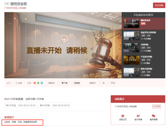 8月19日,时代周报记者前往天河区人民法院,该案已不允许旁听,并变更了审理法庭。为获取旁听资格,记者致电本案主审法官,其助理以疫情期间限制旁听人数为由婉拒。