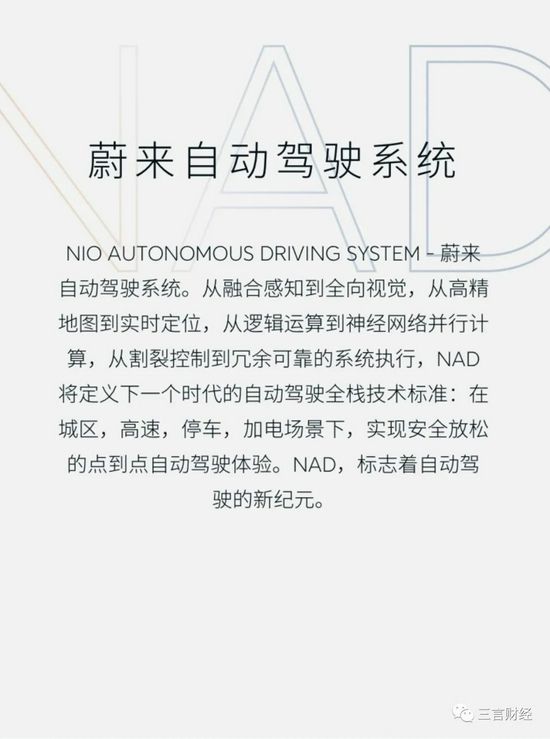 三言财经亦就“NIO Pilot 自动辅助驾驶系统”和“NAD 自动驾驶”两个系统咨询销售,询问尤其是“NAD自动驾驶”是不是字面意义上的“自动驾驶”。