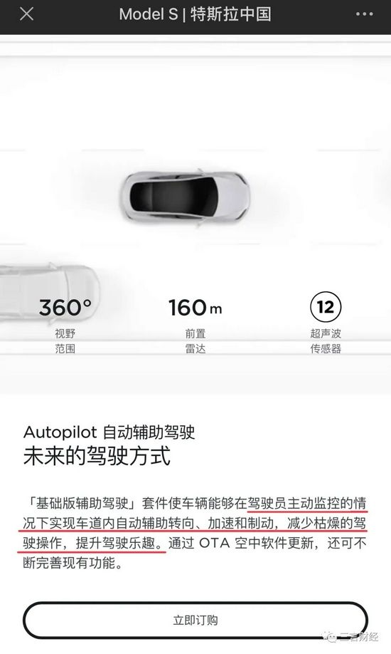 特斯拉官网针对其辅助驾驶系统“Autopilot”功能名称以及宣传描述没有做改动,依然称其为“自动辅助驾驶”系统。