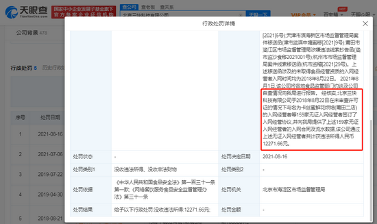 商业 美团与159家无证入网商户合作被罚:没收违法所得 2021-08-23 16:11:22 分享 来源:天眼查天眼查App显示,近日,美团关联公司北京三快科技有限公司因在未审查许可证的情况下与159家无证入网经营者签订了入网经营协议被没收违法所得12271.66元,处罚单位为北京市海淀区市场监督管理局,决定文书号京海市监罚字〔2021〕596号。