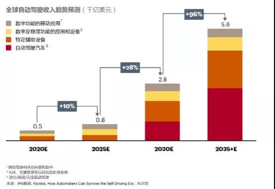 除了信任机制的改善,自动驾驶给整个社会带来的潜在商业价值是无穷的。报告显示,到2035年,人类社会路上行驶的车辆将有50%实现自动驾驶,届时自动驾驶整车及相关设备、应用的收入规模总计将超过5000亿美元,与之相伴的隐形社会收益相当于节约10%的社会总出行成本。