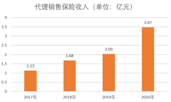 其中,中邮人寿通过其与邮储银行的分销合作关系,触达包括该行约4万个金融网点及超过6亿零售客户。目前,中邮人寿在21个省份销售产品,覆盖邮储银行分销网络的80%。年报数据显示,邮储银行自营网点为中邮人寿提供代理服务确认的收入逐年上涨,2020年末该业务收入为3.47亿元,较2019年的2.03亿元同比增长70.94%。