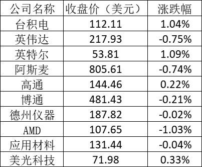 美股中的主要芯片股表现如下: