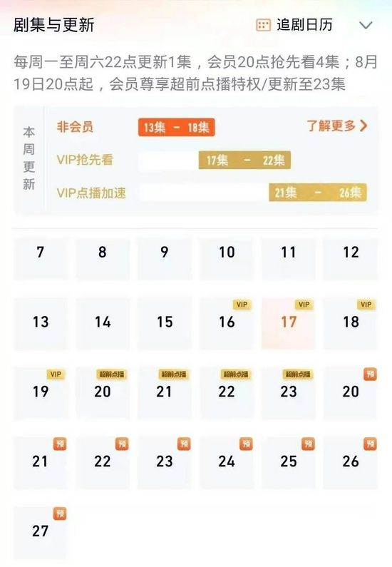 超前点播每集3元钱。如果你想超前点播看23集,必须先买20、21、22集。原本只需要花3元钱就能看,现在必须要花12元钱才能看到23集。