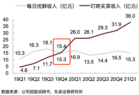 到2021年第一季度,叮咚买菜的月交易用户为690万人,会员用户超150万人,人均下单量约3.4单/月。