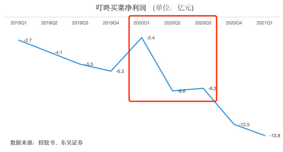 而在疫情得到基本控制,以及居民恢复相对正常生活节奏后,叮咚买菜的亏损幅度再次扩大,去年第四季度亏损12.5亿元;今年第一季度亏损13.8亿元,创下近三年单季度最大亏损金额纪录。