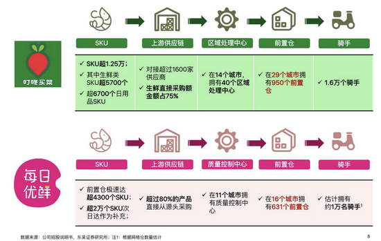 此外,叮咚买菜的经营规模和覆盖范围同样对每日优鲜形成优势(如下图所示)。